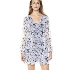BCBGeneration Long Sleeve Floral Mini Dress, Size Medium Lavender Mist