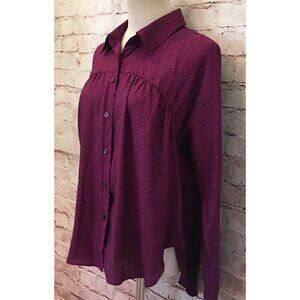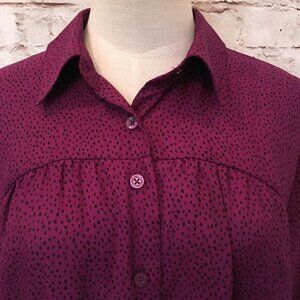 BCBGeneration Purple Mini Dot Button Front Blouse Top Shirt Peplum Womens Size S