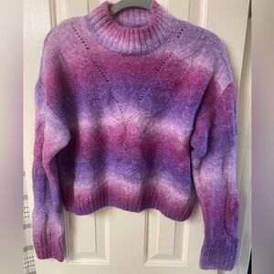 Chic gradient sweater with a cozy turtleneck. Features a blend of purple and pink tones. Perfect for casual wear.