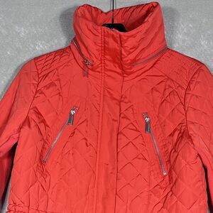Up for sale: BCBGeneration Quilted Jacket Womens Medium Orange Sportswear Full Zip Mock Neck