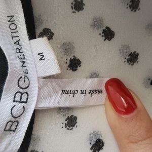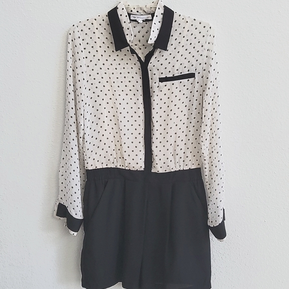 Medium BCBG black and white romper. Top is sheer but has cover . Super cute with a pair of heela or flats.