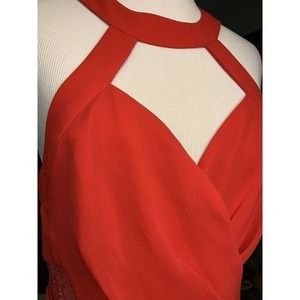 BCBGeneration Red Dress Sheer Lace Long Size 8