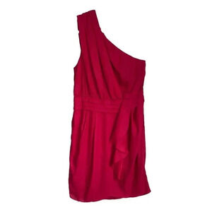 BCBGeneration Red Ruby One Shoulder Silky Ruffle Mini Formal Dress Size 8