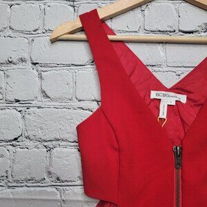 BCBGeneration Red Sleeveless Midriff Cutout Zipper Accent Dress NWT Size 0