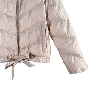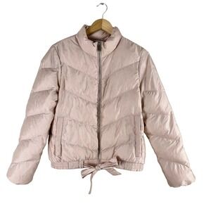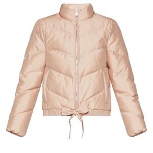 BCBGeneration Ribbon Tie Chevron Quilted Puffer Jacket in Blush, Size Medium
