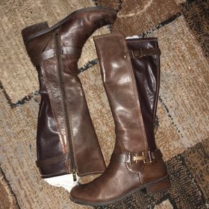 Brown BCBG riding boots. There is a little scuffing around the toe area but it’s not bad. Price is negotiable.