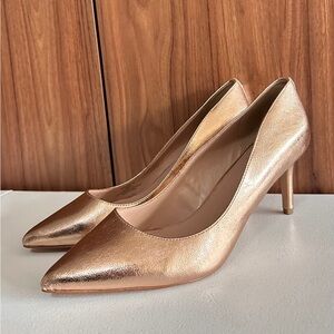 BCBGeneration Rose Gold Metallic Pumps Heels Step out in style with these elegant gold heels. Perfect for any occasion, these shoes add a touch of sophistication to your outfit.