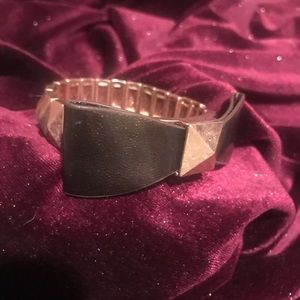 Distressed Rose Gold Stretch Bracelet with Faux Brown Leather Bow Tie. Brand New Without Tags.
