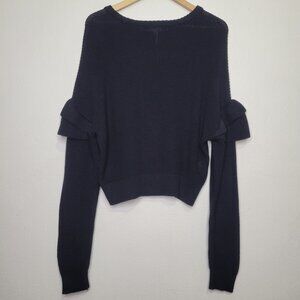 BCBGeneration Ruffle Sleeve Pullover Black Sweater Cropped, Size L