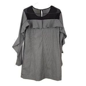 BCBGeneration Ruffle Sleeve Shift Dress Women's Size Medium Houndstooth Black & White