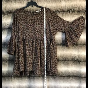 retro-inspired top with a flouncy hemline and three-quarter-length, ruffled sleeves,size XS color black/olive