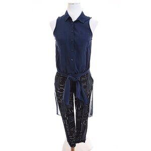 BCBGeneration SET Sz XS Long Shirt Tunic Top Jogger Crop Pant Outfit Blue Women
