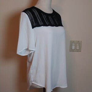 BCBGeneration SIZE M TEE SHIRT CUT TOP WITH BLACK LEATHER LOOK DETAIL