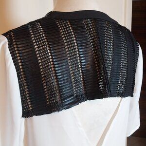 This BCBGeneration top is a size M and has a fun stencil cut detail with a small shoulder top zipper. It is in EUC and will pair with skirts, pants or jeans. It can go to the office or casual out and about.