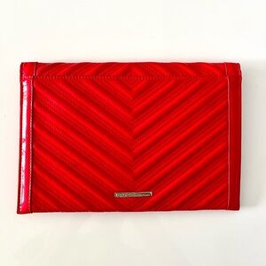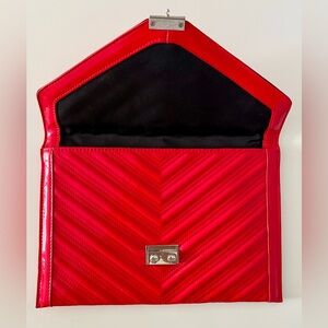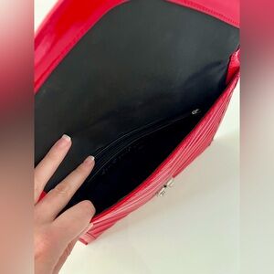 Bold scarlet clutch with quilted design. Features a sleek silver clasp.
