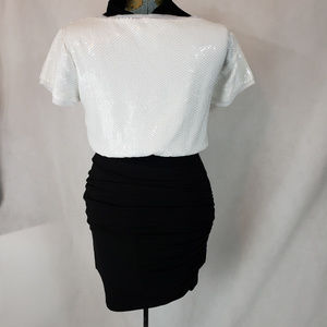 BCBGeneration Sequin Bodice Wht/Blk Ruched Skirt