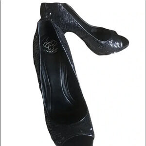 Make a fashion statement with these BCBGeneration sequin heels. Worn once for an event. Very comfortable and easy to walk in Size 8.5; black. (PM 77A)