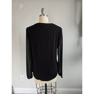 Say hello to your new statement piece. This electric blue sheer top is giving mod vibes with a modern twist. Adorned with whimsical white floral appliques outlined in black, it's got just the right mix of edge and charm.