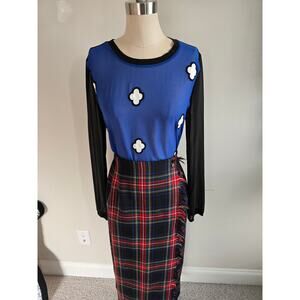 Sheer blue front and solid black back with black long sleeves