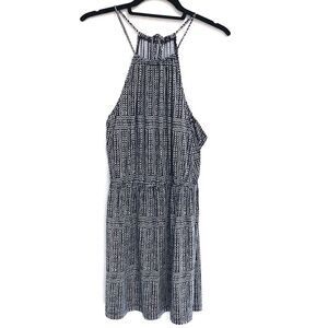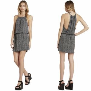 BCBGeneration Shirred-Waist Tribal Print Halter Dress. Black and white pattern. Size small. Tag partially unstitched