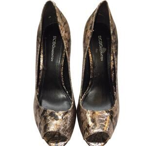 BCBGeneration Shoes 8 Snake Skin Platform Open Peek Toe High Heel Pump Stiletto