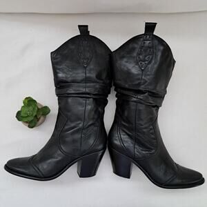 BCBGeneration "Silk" Slouchy Black Leather Cowboy Boots Western Size 7.5