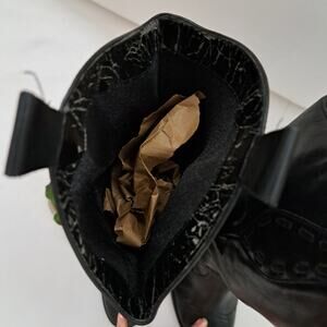 Good preowned condition. Some normal wear to the exterior/soles. (If your cowgirl boots are pristine, you're wearing them wrong :) ) Crackling on the INSIDE top (see last photos)