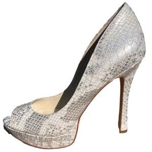 BCBGeneration Silver Metallic Snake Skin Stiletto Heels Barely Worn!