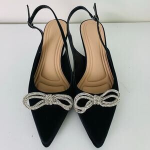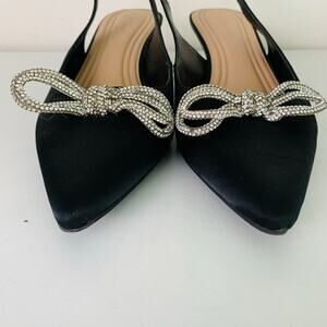 BCBGeneration Size 9.5 Donna Rhinestone Bow Satin Slingback Kitten Heel