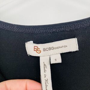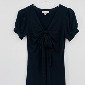 BCBGeneration Size Small Black Puff Sleeve Knitted Neckline Mini Stretch Dress