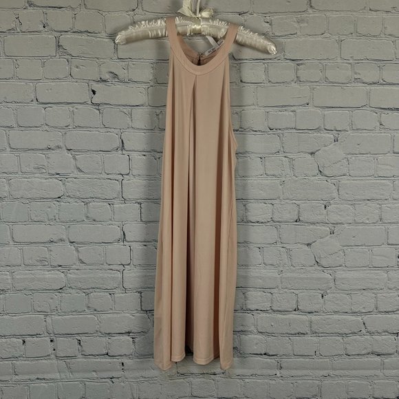 BCBGeneration Sleeveless, Halter, High Neck, Mini Sheath Dress, Size Small, Rose Smoke in Color (Blush Pink), 96% Polyester/4% Spandex