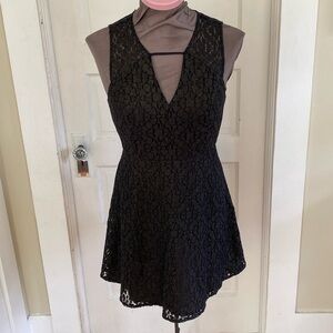BCBGeneration Sleeveless Little Black Party Dress Black Gold Shimmer Lace 8