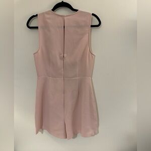 Gently used BCBGeneration romper in dusty pink. Features a skort design with lace-up grommet detailing on the lower front hem, a low V crossover front with snap closure, and a tank design. Includes a hidden back zipper with a hook-and-eye neck closure. Machine washable. Approximate flat lay measurements are pictured. There is a small surface spot on the front that I have not tried to remove. Smoke-free home.