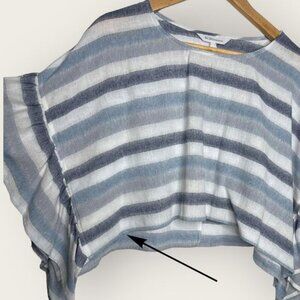 BCBGeneration Striped Crop Top | XXS | Blue White Flutter Sleeve Cotton Gauze