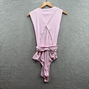 BCBGeneration Surplice Wrap Tie Knit Bodysuit Pink M