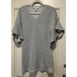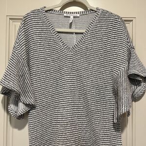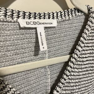 BCBGeneration Sweater Dress Black & White Bell Sleeve Mini Ribbed Knit Sz SMALL