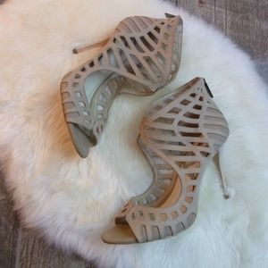 Stylish cutout design. Peep-toe style. High stiletto heel. Never been worn since purchased. still in like New Condition