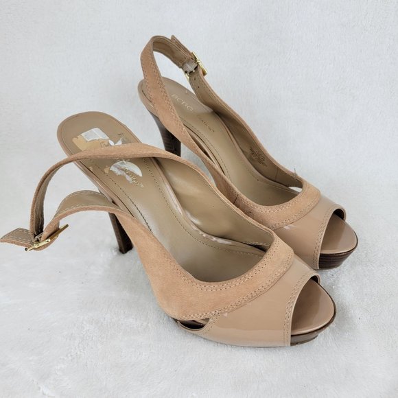 BCBGeneration Tan Slingback Heels with Peep-Toe Design