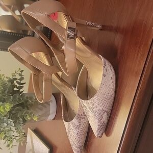 BCBGeneration Tan and Snakeskin Heels Sz 9
