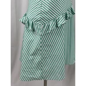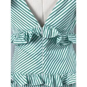 BCBGeneration Tie Shoulder Green And White Stripe Ruffle Dress 6