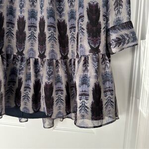 BCBGeneration Tiered Feather-Print Overlay Long Sleeve Dress Size Medium