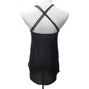 BCBGeneration Top Juniors XXS Black Green Floral Sheer Cross Back