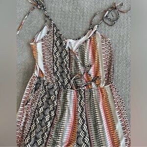 Gorgeous tribal design jumpsuit romper with side leg slits. Army green cream orange colors,