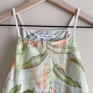 BCBGeneration • Sheer Overlay Flowy Tank Top in Green Tropical Print, Size XS