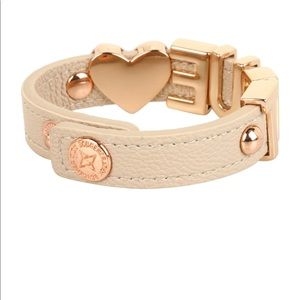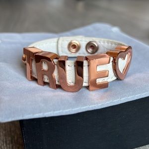 BCBGeneration True Love White Faux Leather Snap Bracelet With Rose Gold Letters