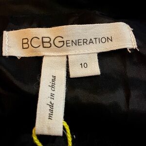 BCBGeneration Tweed Collared Lace Inset Dress 10 NWT! Style GZN62D24-065. Approximate measurements laying flat 33” shoulder to hem, 18” at widest part of bust and 15.5 waist. Polyester with nylon contrast. Acetate lining. Hand wash cold.