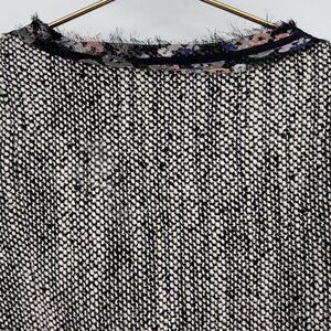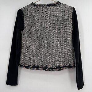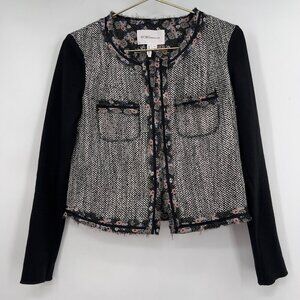 BCBGeneration Tweed Knit Sleeve Jacket Blazer S Black White Floral Trim