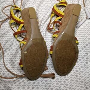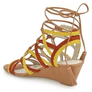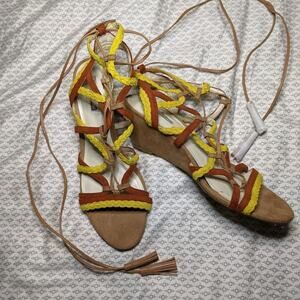 BCBGeneration Vanda Wedge Lace Up Strappy Sandals Yellow NWOT Size 9.5