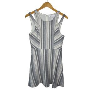 #bcbg zara reformation revolve anthropologie #woven swing skater #minidress sleeveless cut out #striped neutral #summer party