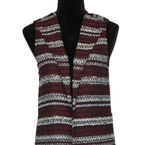 BCBGeneration Vest Duster XS White Black Red Tweed Stripe Washable Knit Topper